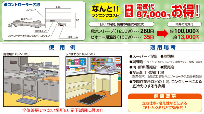> ピオニー業務用足温器
