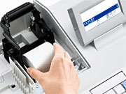 ロール紙の交換は投げ込み方式を採用し、